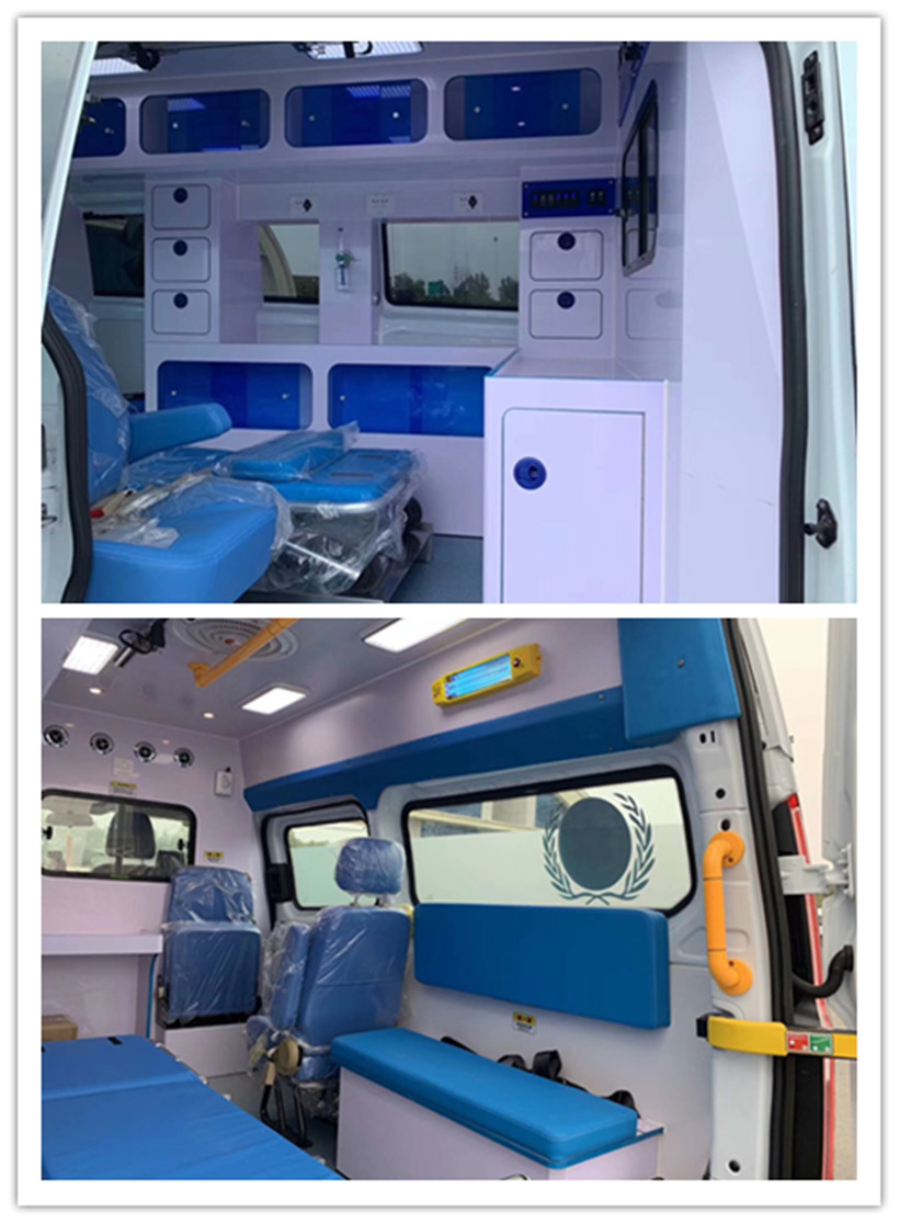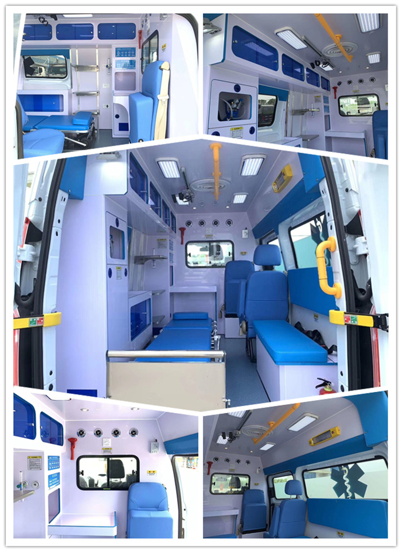 Medical, ambulance system: automatic loading stretcher; infusion fixator; middle wall assembly; cabinet assembly (including oxygen cabinet, medicine cabinet, equipment cabinet, locker); medical cabin interior (medical PVC interior, waterproof , mildew proof, antibacterial, easy to clean); medical compartment bottom plate (slip, waterproof, mildew proof, antibacterial, easy to clean)