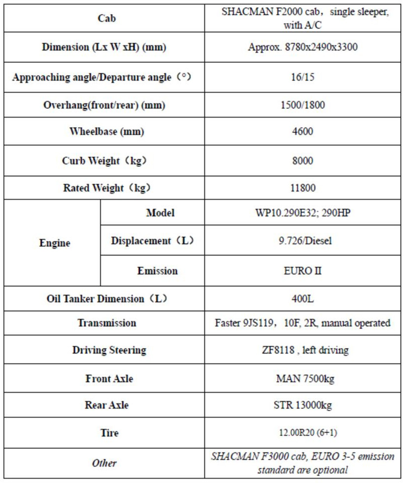 Emission standard: EURO3, EURO4, EURO5,EURO6