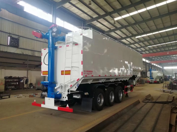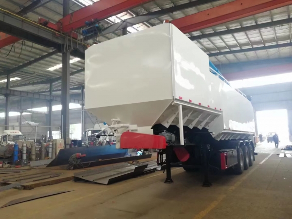 The tank body is welded with 4mm high-strength high-quality carbon steel plate at one time. The tank body is divided into six compartments, which can independently control the unloading speed and sequence of each compartment. Each compartment has a feed inlet and a lower maintenance outlet.