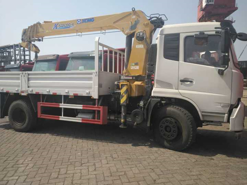 Dongfeng Tianjin 4x2 truck avec XCMG 8t 4 section camion de grue à flèche en bras droit, inspection terminée et essais du client aux Philippines.