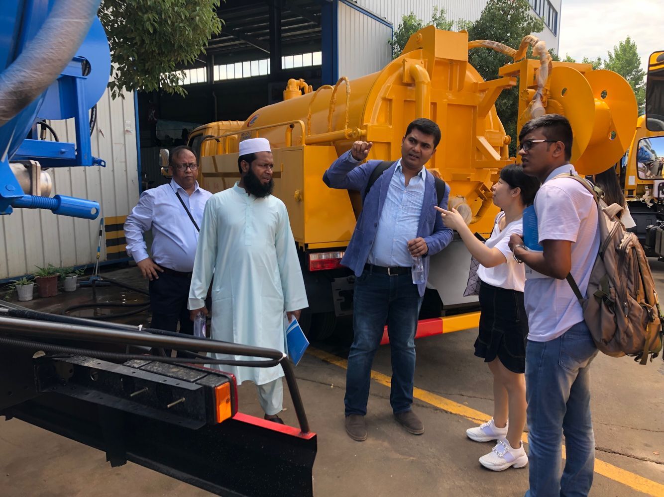 Un client du Bangladesh visite l‘usine de camions d‘aspiration sous vide de Chengli