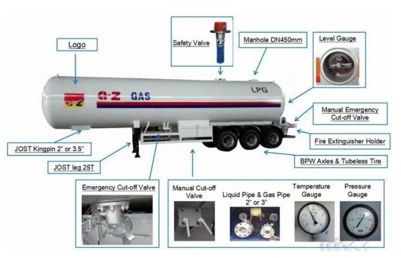 Semi-remorque citerne GPL 54000L 3 essieux pour l‘export