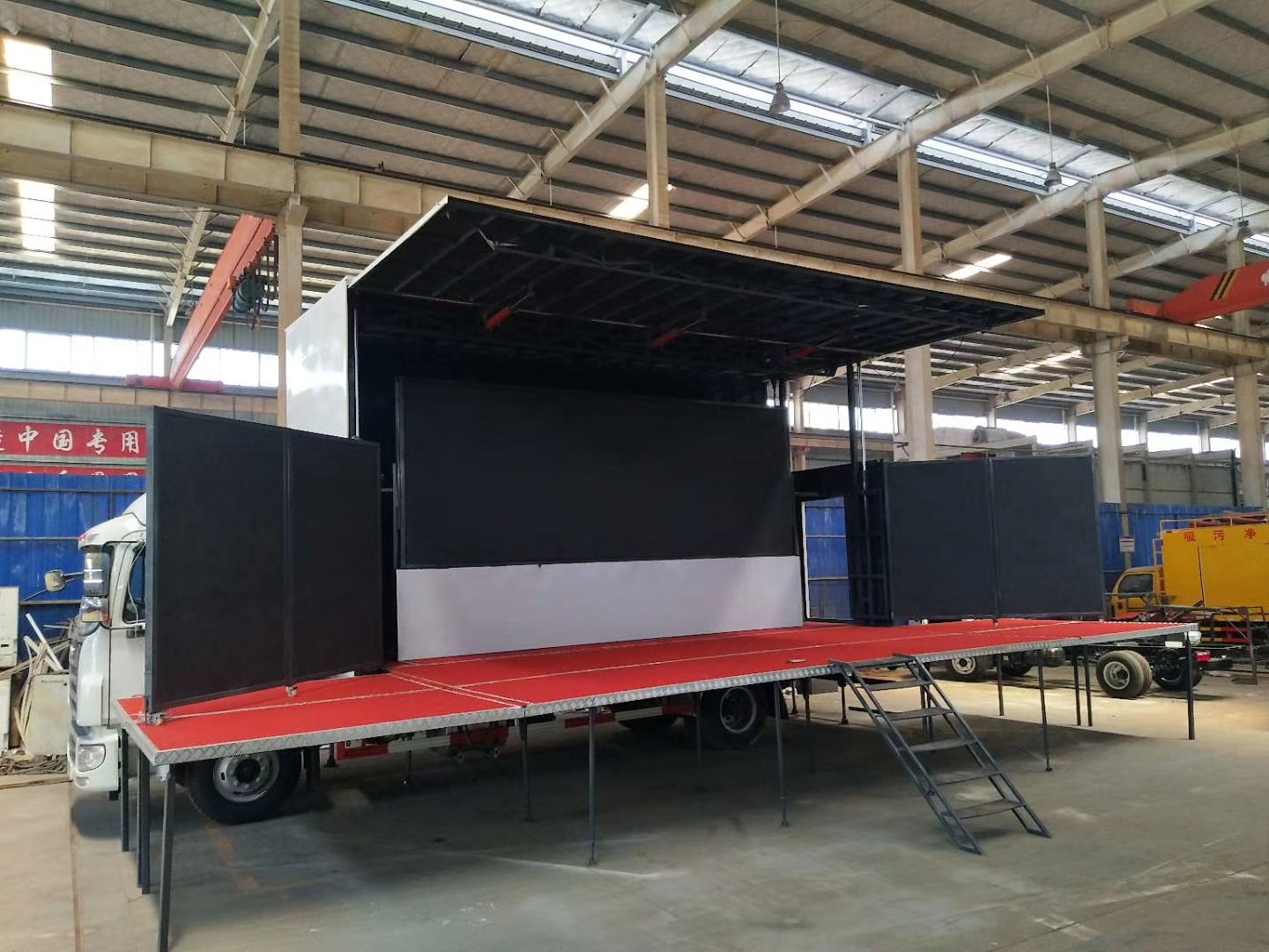 2. L‘arrière de l‘écran LED a un étage hydraulique de grande surface et les véhicules gauche et droit sont utilisés en arrière-plan