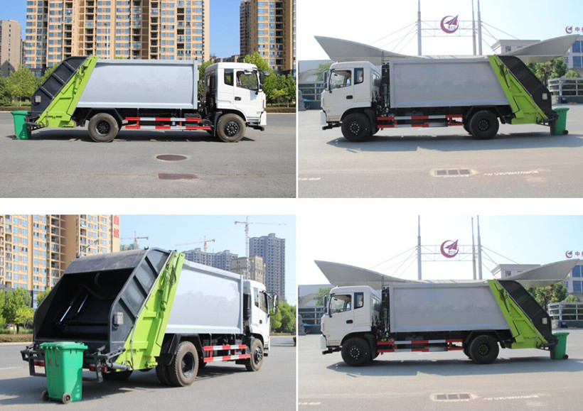 3) Adopting two-way compression technology, optimized hydraulic system and advanced press-fitting structure design, the press-fitting operation has a large compression force and a large compression ratio. The push plate simulates the garbage filling direction (curved surface) design to ensure that the different components of garbage are evenly pressed. The ground compresses and fills the entire vehicle box without dead corners and gaps or blockages, which greatly increases the net load of garbage.