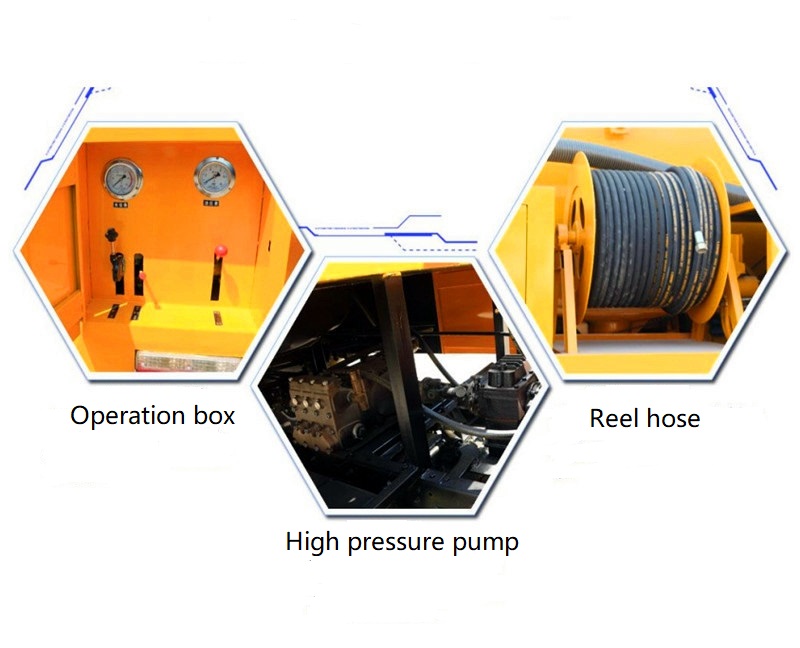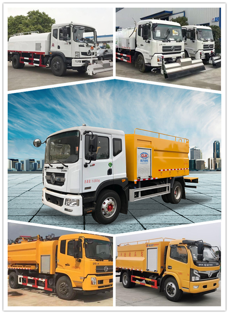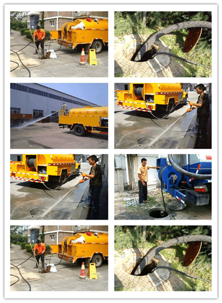 The high-pressure cleaning vehicle (sewer dredging vehicle) is mainly composed of automobile chassis, water tank, water system, hydraulic system, hose reel, flushing pipe, high-pressure nozzle, etc. The cleaning vehicle is mainly used to clean the sediments of roads, squares, sewers, pipelines, and dredge dead angle mud ditches. It can also be used to clean industrial drainage pipes and walls.