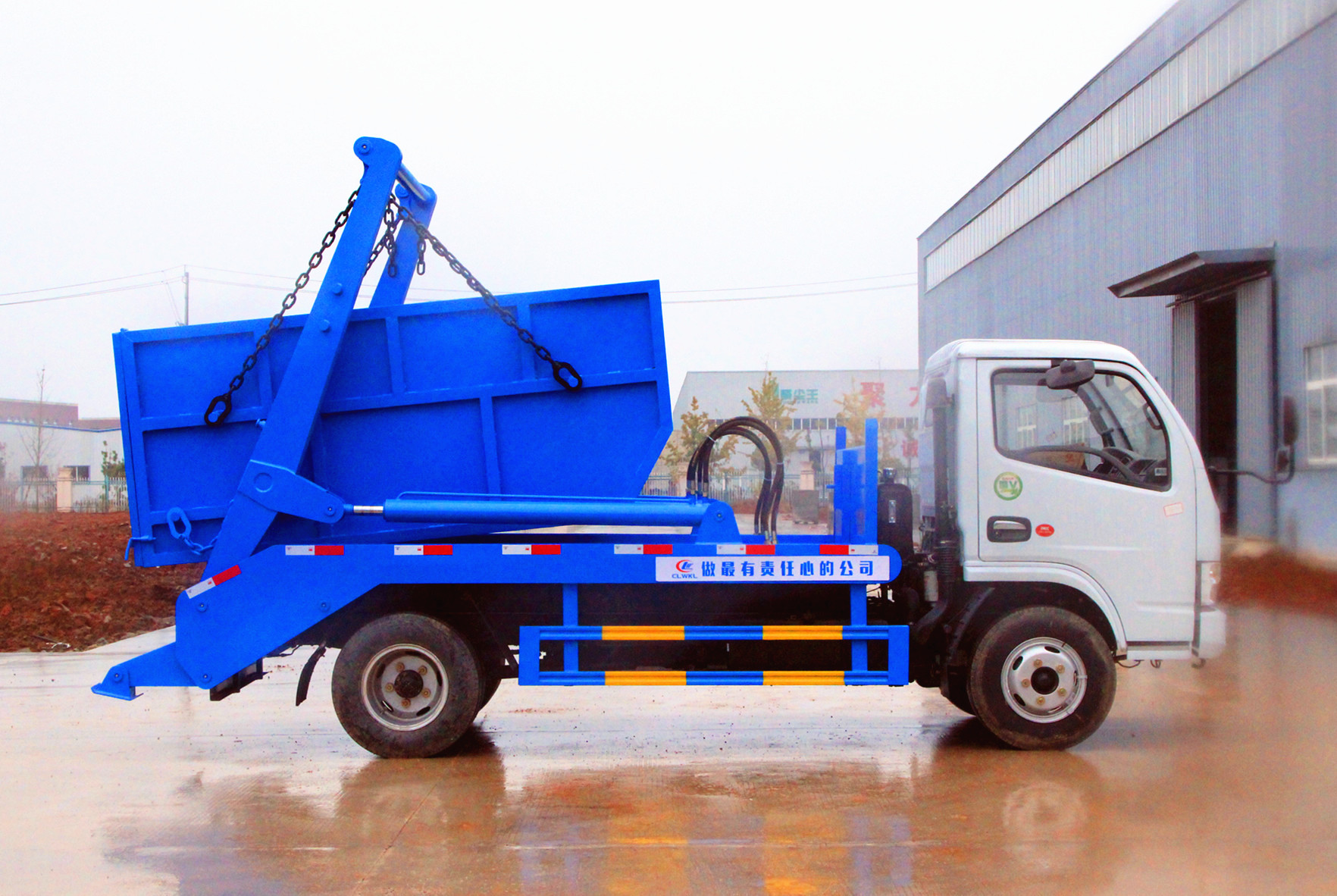 The oil cylinders are all equipped with supporting products of Dongfeng chassis. The outer diameter of the oil cylinder is 160mm, the inner diameter is 125mm, the stroke is 1680mm, and the cylinder rod diameter is 70mm. This vehicle is also equipped with a hydraulic balance valve device not available from other manufacturers to make the operation more stable. The car body material is made of high-quality materials from Wuhan Iron and Steel Company. The car body volume is 5 cubic meters, and the paint is the same as the cab (Dongfeng Blue). This car is equipped with a garbage hopper, which is not sealed. Special box for swing arm garbage truck (ground type), box body material: made of high-quality carbon steel plate of Wuhan Iron and Steel Co., box body thickness: three sides and four bottoms (mm), paint is consistent with cab color.