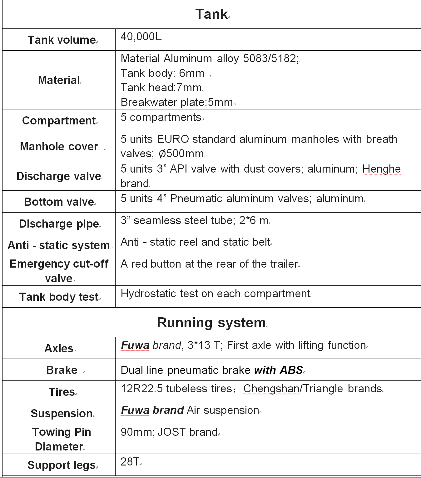Customized 40,000L aluminum alloy fuel tanker semi trailer: