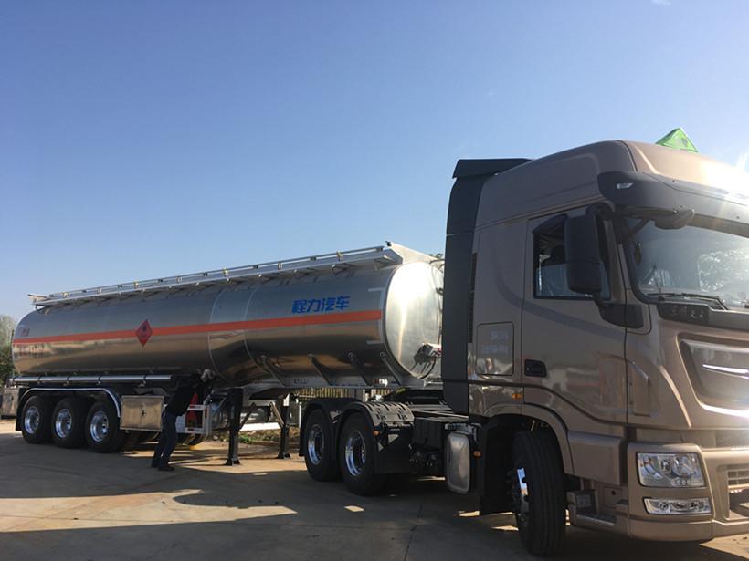 40,000L aluminium alloy and stainless steel fuel tank trailer cusomized by Chengli. 13T BPW/ FUWA axles and heavy duty air suspension; Jost support legs;EURO standard bottom loading series; Compartments divided as required.