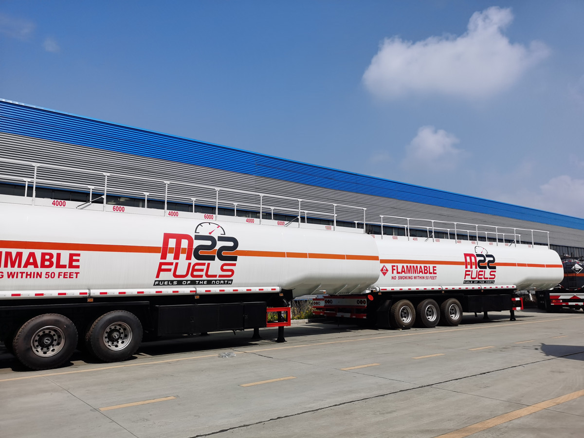 40000L oil transport tanker trailer: Q345 carbon steel ,bottom loading series, 8 compartments and customized painting/LOGO. These fuel tank semi trailers were customized for Africa market by Chengli special automobile company.