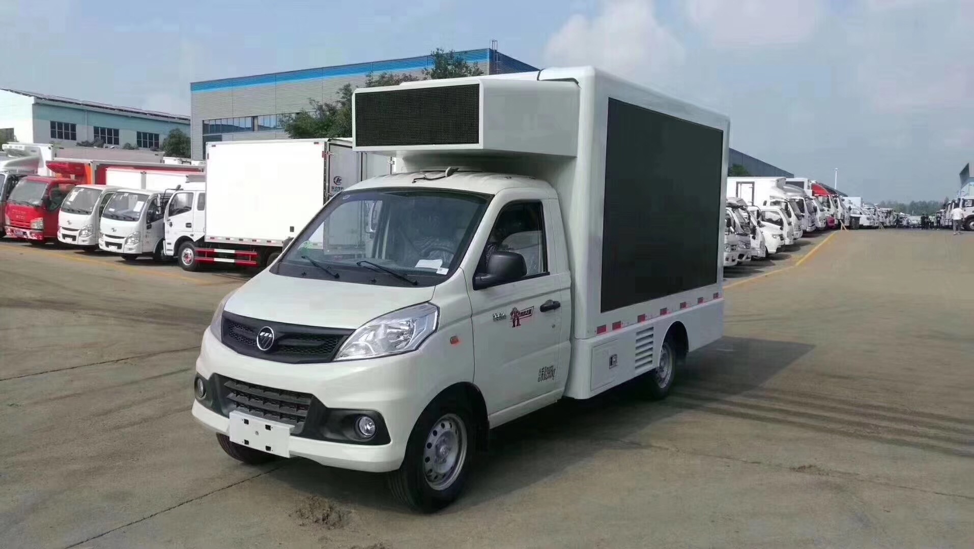 LED box body: The left side of the cab is P8/P6/P5/P4 waterproof and shockproof full color screen with a size of 3.5 square meters. The size is 2304*1536. The right side is an advertising light box and the back door is a monochrome subtitle screen. The pedals are made under the back door, and the front panel is loaded with a red bar screen: the size is 960*320mm.