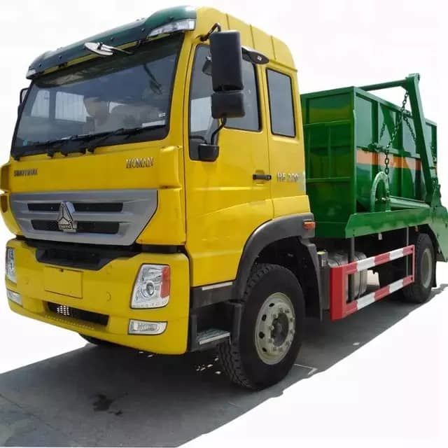 HOWO 4x2 swing arm garbage truck with 10M3 skid loader contatiner