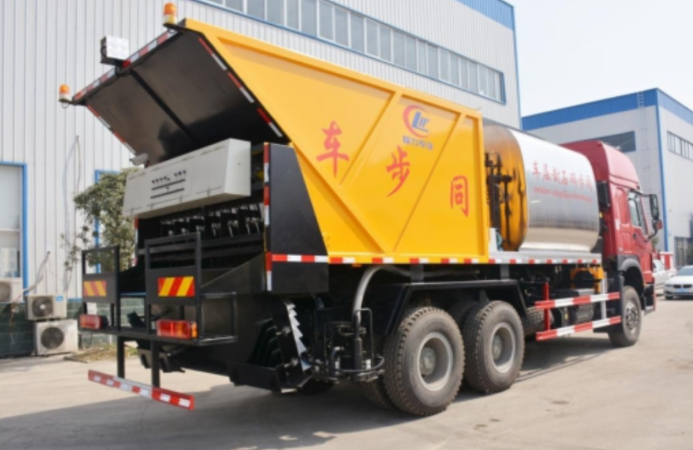 ◆ This equipment adopts internal lifting hopper to realize the construction of stone chip spreading, which is more convenient for culvert construction, under-bridge construction, and curve construction;