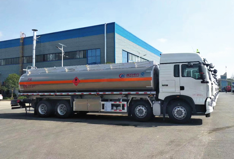 SINOTRUK HOWO 340-horsepower chassis, 27.4 cubic meters, high-quality aluminum alloy 5083 tanker truck, with pump pumping out, European standard system (seabed valve, European standard tank mouth, oil discharge valve, oil and gas recovery, anti-overflow alarm , anti-static reel), all other sub-pieces are aluminum alloy detachable. Chengli Special Purpose Vehicle Co., Ltd. creates high quality hazardous transportation products for you.