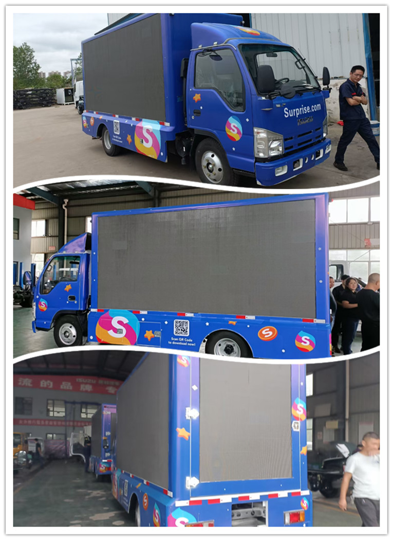 Isuzu P3, P4, P5 colorful screens LED advertising vehicle is a new type of communication medium that organically combines cars with large-scale LED display screens, with three-dimensional video animation forms, rich and diverse contents, real-time display of graphic information, and mobile advertising. It is generally used for product promotion, brand promotion, talent show activities, sales site display, sports events, concerts, concerts, etc. It can carry out on-site display, communication and interaction, with a wide range of publicity, and can effectively obtain the maximum advertising effect.