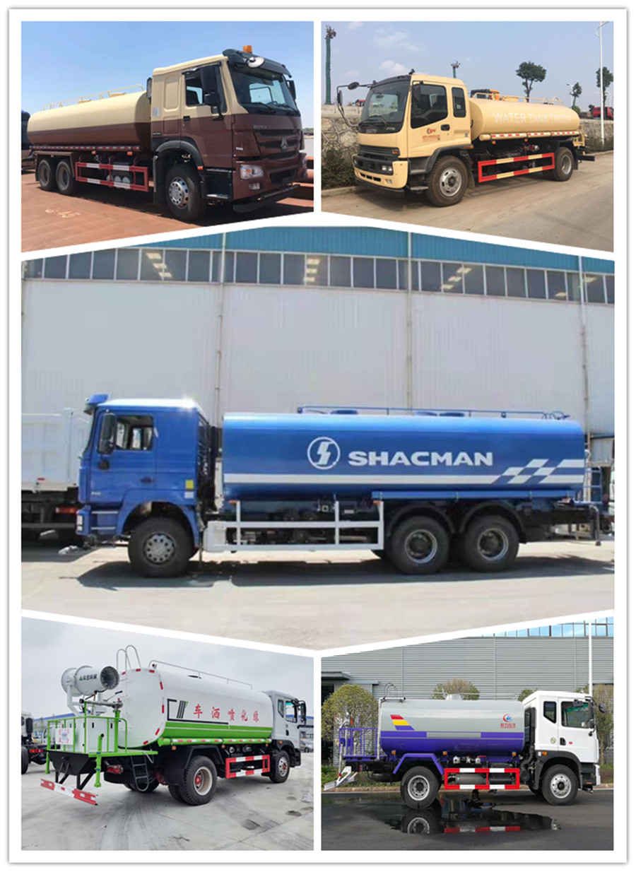 Tank volume: 18-20 cubic meters. The tank steel plate is a 4mm carbon steel Q235 special volume plate, which is formed at one time. The partition in the tank has a wave proof effect to reduce the impact of the tank liquid when the car is driving; Equipped with high-power special sprinkler pump, the pump can self suction and self discharge; The whole vehicle is flushed forward, sprayed backward, sprayed laterally, and the rear platform is equipped with green sprinklers. The sprinklers can rotate in all directions, and can be continuously adjusted to direct, heavy, light, and drizzle; The front head is equipped with a water level gauge, the main pipe of the rear platform is equipped with a 1-inch watering interface, the rear ladder is equipped with a fire connector, a gravity valve and a filtering device.