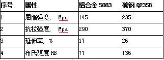 Table 1: Comparison of aluminum alloy materials and carbon steel materials