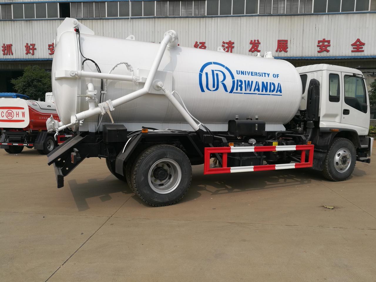 3. Water gas separator. In the suction truck, the water gas separator can play two roles. One is to separate the moisture contained in the gas entering the vacuum pump, and the other function is equivalent to an anti-overflow valve, the overflow prevention principle of the water gas separator and The principle of the anti-overflow valve is the same. There is also a float ball in the water-gas separator. When the sewage in the water-gas separator accumulates to a certain amount, the float ball rises and blocks the gas port to prevent the sewage from entering the vacuum pump.