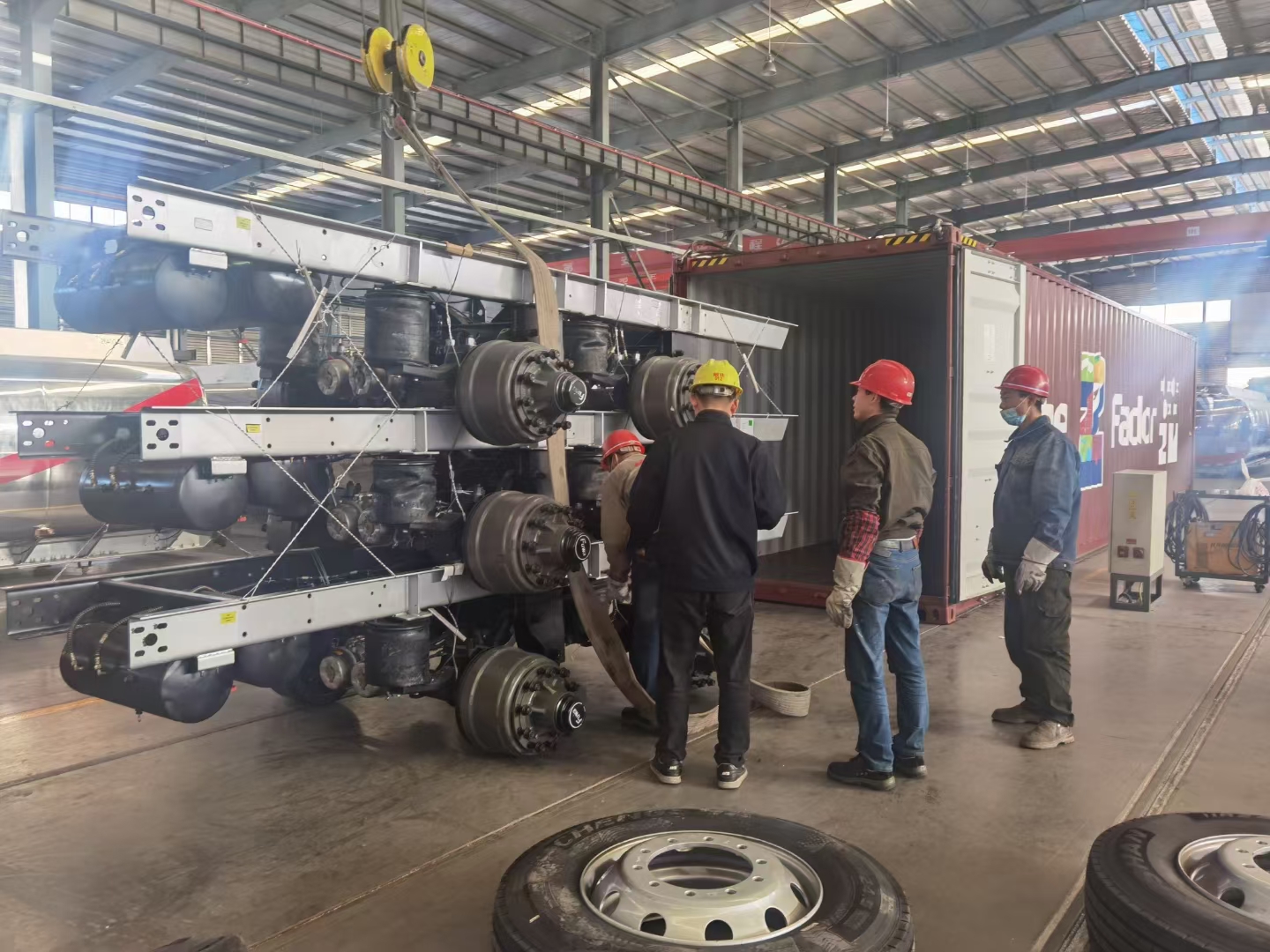 35000L mirror aluminum alloy tank trailers delivery by containers to save sea freight. Considering the high cost of sea freight,Chengli do our best to save cost for customers. The tank body , the chassis frame ,the tires and other accessories were divided into seperated ones to delivered by containers.