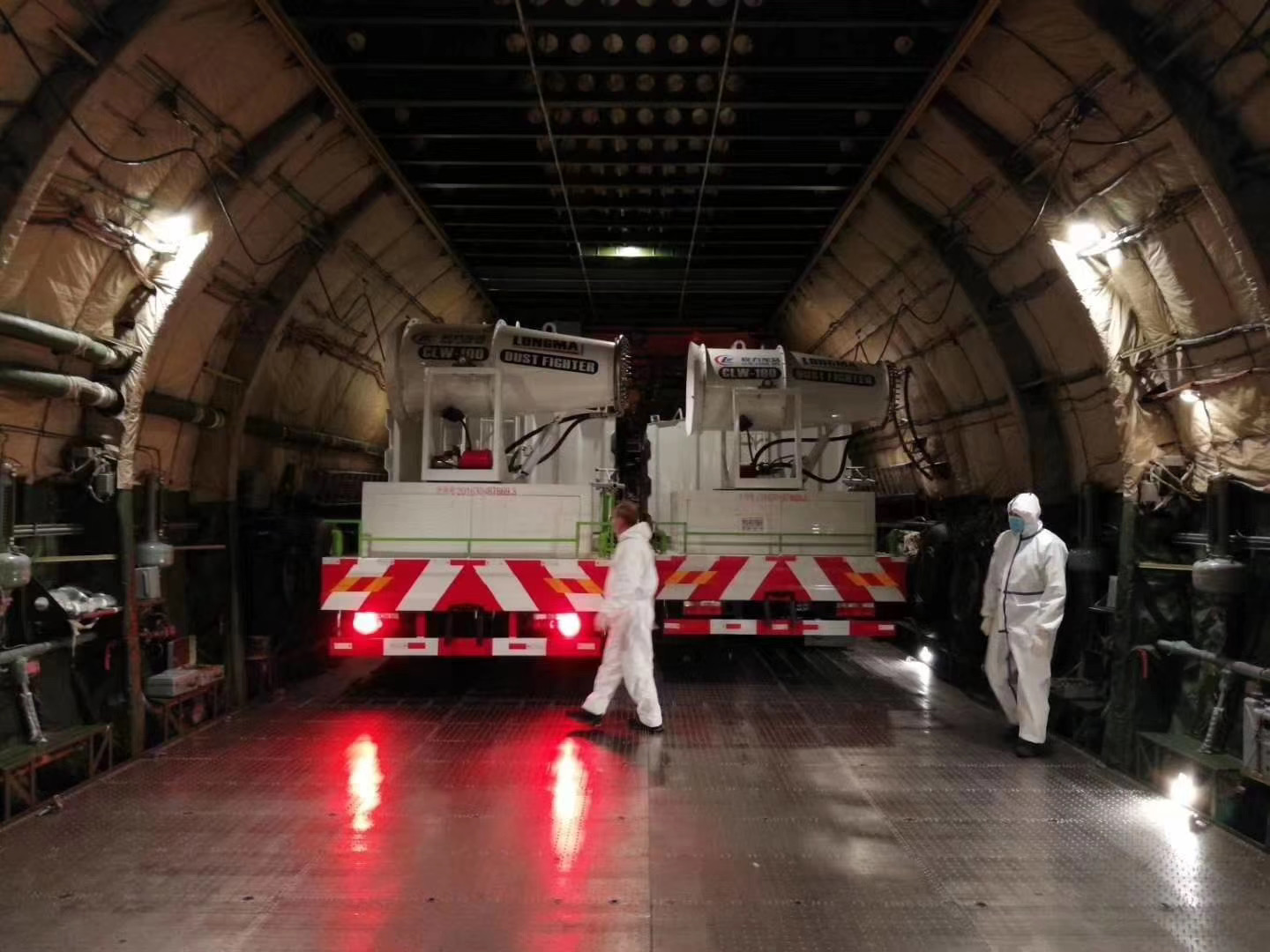 At the time of the outbreak of new coronaviruses in the world, Cheng Li completed a batch of 45 Dongfeng Tianjin 100m dust suppression vehicles purchased by the UAE in eight days, and they were successfully transported by air.