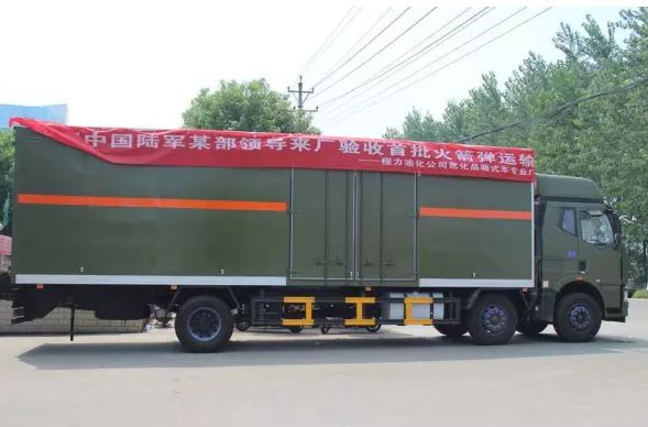 On January 15, 2018, Chengli Automobile Company‘s hazardous chemicals van factory successfully delivered the first batch of 9.6-meter rocket transport vehicles. The excellent quality won the unanimous approval of the head of the PLA People‘s Liberation Army and the accompanying leaders.