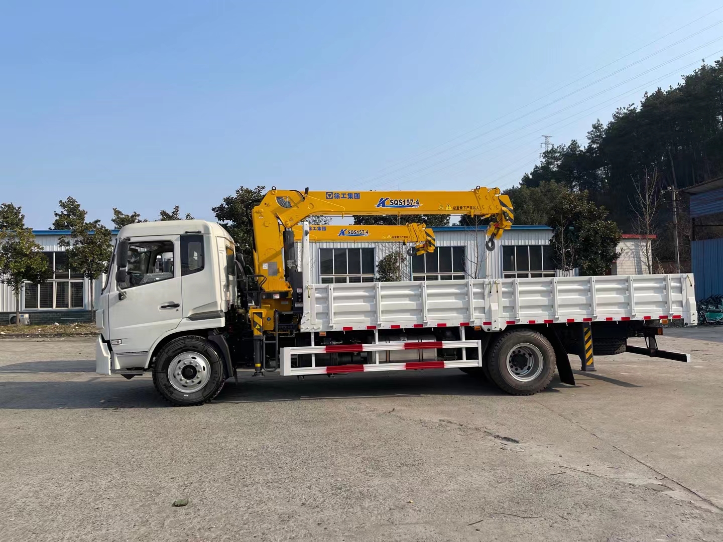 XCMG SQS157-4 6.3-ton 4-section straight arm crane is installed on the top, with full hydraulic full rotation and optional rear outriggers; cargo box size: 6000*2300*600mm.