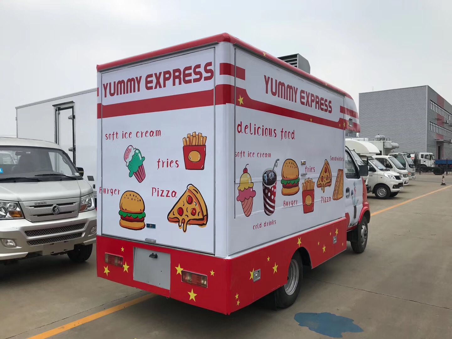 FOTON small 5t fast food vehicle/van customized for Yummy Express company. Inner configurations can be installed according to needs. It is a good choice for fast food and ice cream sale.