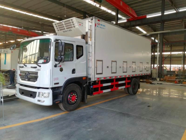 The chicks transporter manufactured by adopting new technology and new technology has the characteristics of good heat preservation performance, beautiful appearance, light overall weight, high strength, and no leakage. The compartment board has good impact resistance, and has good corrosion resistance and aging resistance to the atmosphere, water, acid, alkali, salt and other media. The optimized design greatly reduces the height of the compartment floor from the ground, increases the effective volume of the compartment, and makes the vehicle safer. Ventilation slots are installed on the bottom of the compartment to facilitate air circulation throughout the vehicle and maintain a balanced temperature in the compartment. The refrigeration unit has the well-known domestic and imported unit selection, the temperature can be kept at 25 degrees, the unit has the characteristics of simple structure, convenient operation and reliable operation, low energy consumption and large cooling capacity, low noise and convenient installation and maintenance.