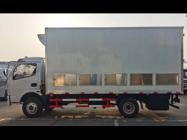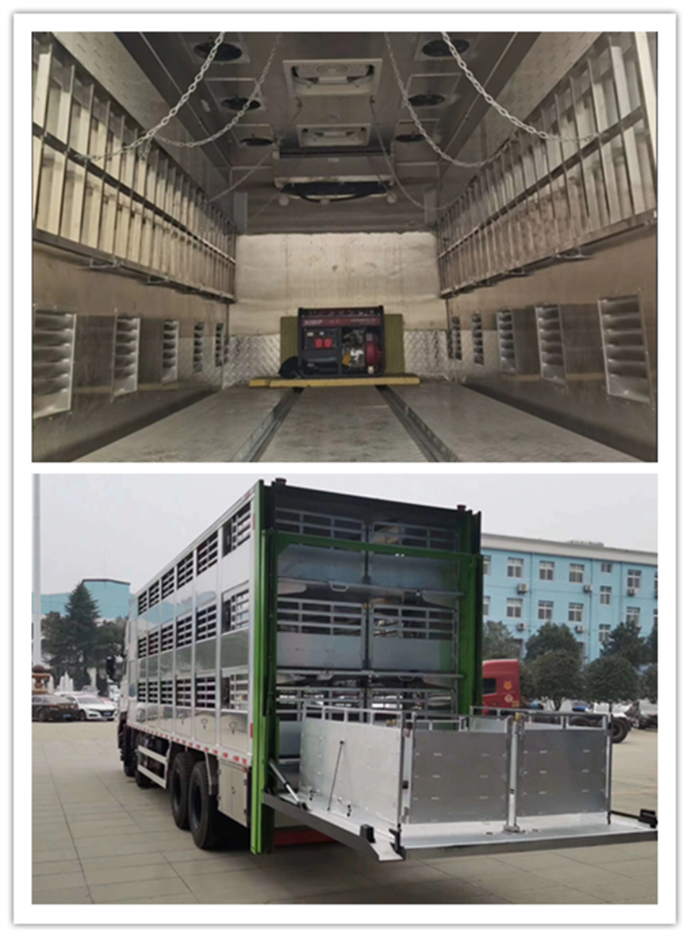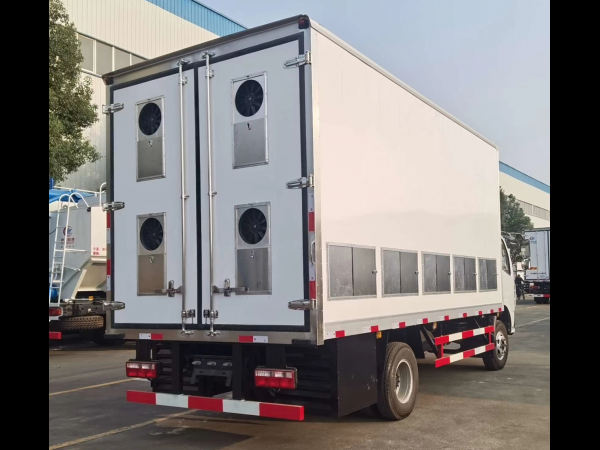 The chick/livestock transport vehicle (chicken transport vehicle) is a fully enclosed intelligent temperature control and air circulation system. The upper body of the whole vehicle adopts the manufacturing process of refrigerated trucks. The panel splicing structure is formed at one time. The thickness of the body is 8cm. The inner and outer materials are glass steel plates. The middle 8cm polyurethane insulation board is equipped with heating and cooling equipment. The air-conditioning is mixed to fully ensure that the temperature in the compartment meets the physiological requirements of the chicks. Ventilation windows are designed on both sides and front and rear of the car body. There is a skylight with strong exhaust fan on the top. Temperature monitoring equipment is installed in the car. The internal temperature can be intuitively monitored in the cab, and the temperature can be monitored in the cab at any time. After adjustment, the carriage can be customized according to the size of the user‘s seedling box, and the bottom of the compartment is equipped with a roller-type conveying guide or a roller-type flatbed, which is convenient for loading and unloading the seedling box. This truck is mainly used for the specialized transportation of chicks, ducklings, pigeons and birds.